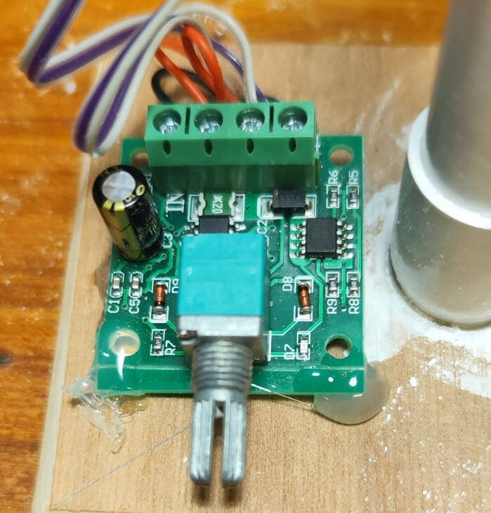 Il restait à faire le corps de l'éolienne pour intégrer le moteur et trouver un système de blocage pour qu'il ne tourne pas dans sa cavité.